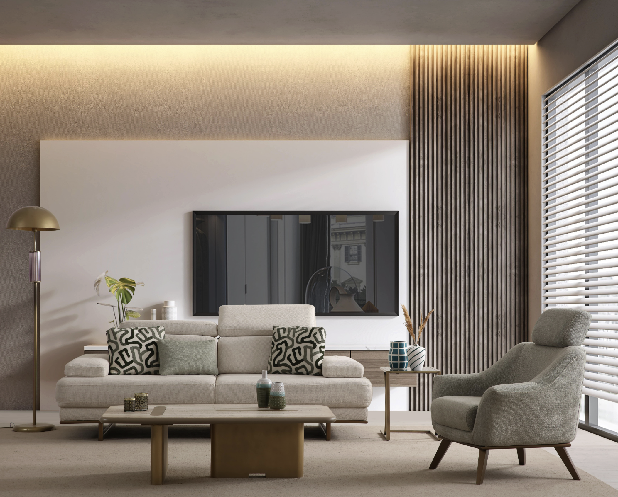 Salonunuzda bir saray asaleti. Işıltılı gold (pirinç) ayak detayları, yaşam alanınızı genişleten hareketli kolçak mekanizması ve üstün konfor sunan özel dokulu kumaşıyla Saray Koltuk Takımı, lüksü ve fonksiyonelliği bir arada sunuyor. Hem geniş bir oturum alanı hem de göz alıcı bir şıklık arayanlar için tasarlandı.