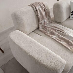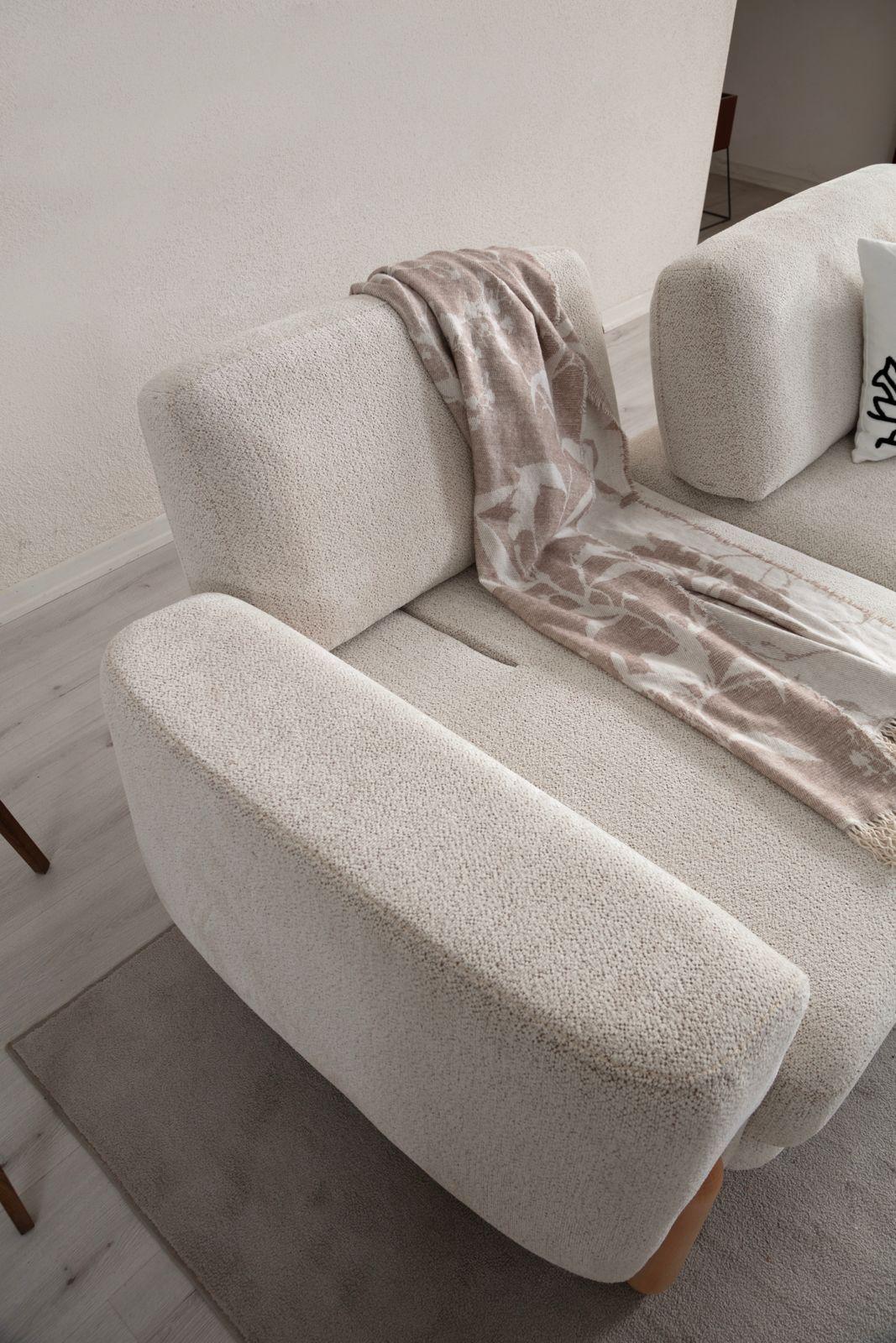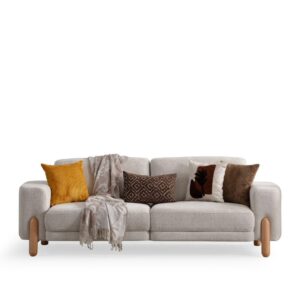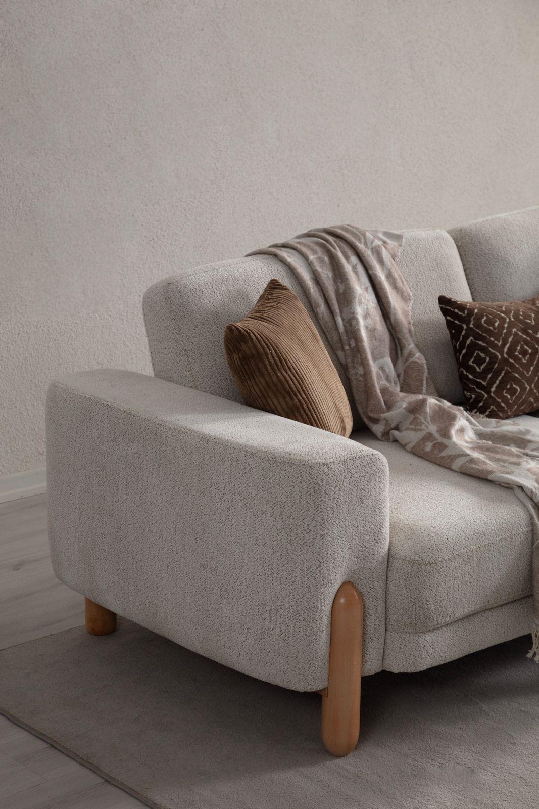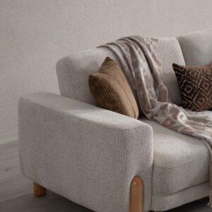 Evinizde huzurlu ve sıcak bir atmosfer yaratın. Son dönemin en gözde trendi yumuşak dokulu buklet (teddy) kumaşı, doğal ahşap ayakların zarafetiyle buluşturduk. Yuvarlak hatlı tasarımı ve bulutların üzerinde oturuyormuş hissi veren konforuyla yaşam alanlarınıza modern bir dinginlik katıyor. Hem görsel olarak şık hem de dokunduğunuzda sizi saran bu özel tasarım, salonunuzun yeni favorisi olacak.