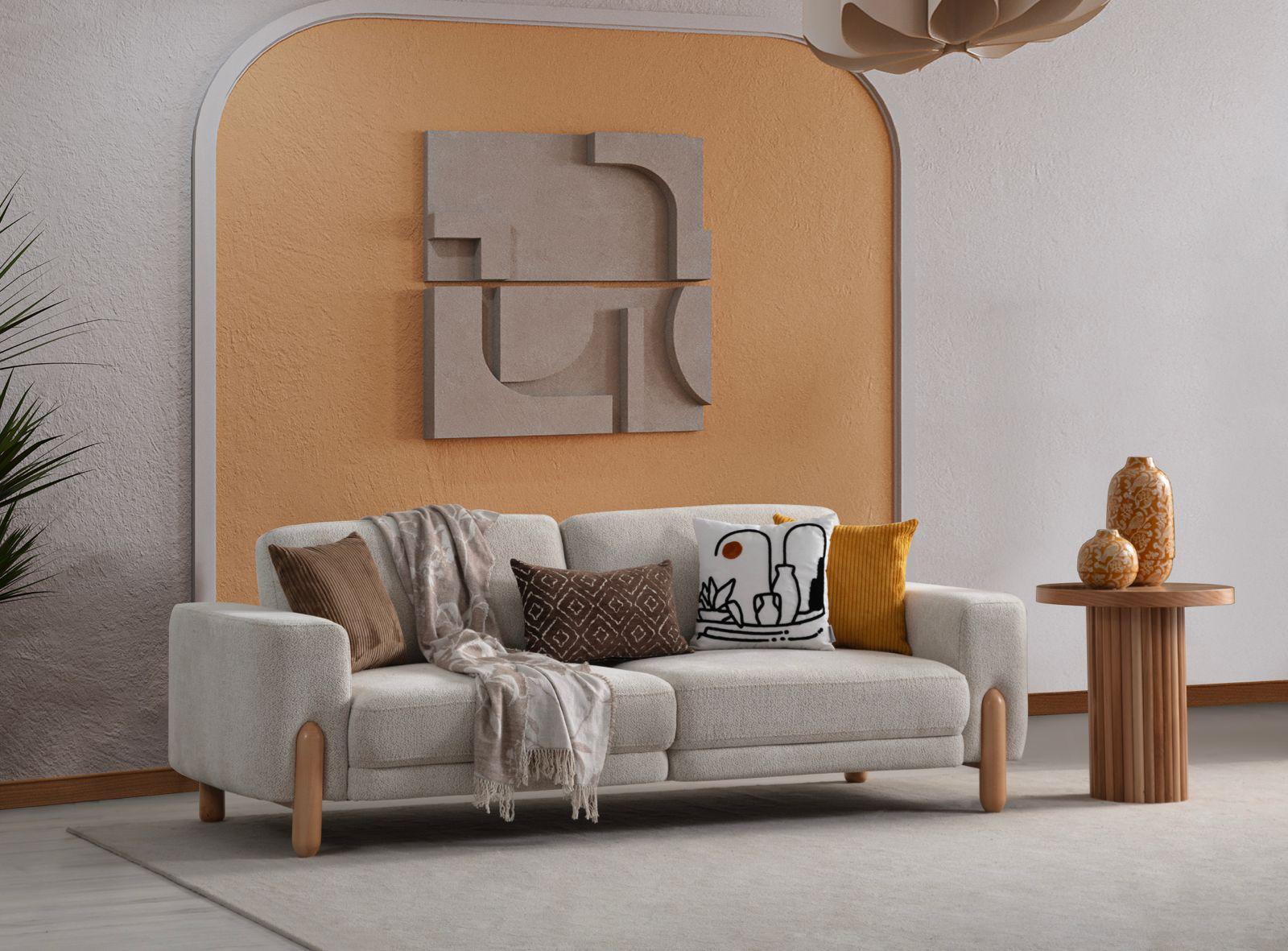 Şehrin karmaşasından uzaklaşıp evinizde sakin bir liman arıyorsanız, bu takım tam size göre. Doğal ahşabın sıcaklığını, trend buklet kumaşın benzersiz dokusuyla harmanlayan tasarımımız, “Soft Minimalist” ve “Boho” tarzını salonlarınıza taşıyor.